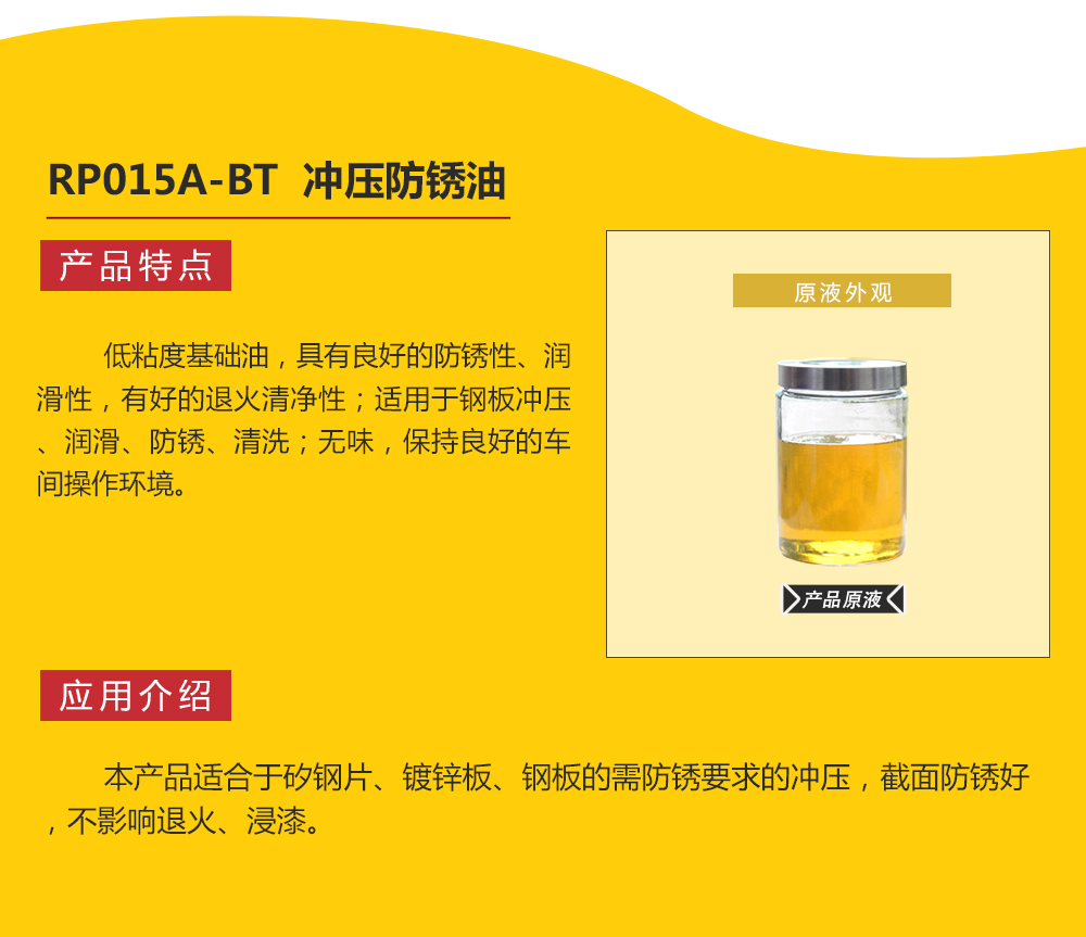 RP015A-BT,沖壓防銹油,鋼板沖壓防銹油,硅鋼沖壓防銹劑,鋼板沖壓防銹劑,鍍鋅板沖壓防銹劑,油膜防銹劑